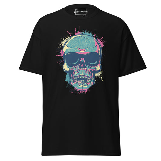 Make a striking statement with the Colour Skull Cotton T-shirt, where art and attitude collide. This unique design features a meticulously crafted skull, its intricate patterns blending seamlessly into the bold composition. The skull, with its detailed engravings and confident expression, is framed by dynamic splatter effects that add an energetic, artistic touch. The addition of sleek sunglasses brings an air of cool sophistication, making this piece stand out in any setting.