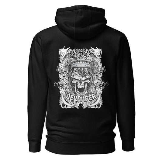From casual hangs to making a bold statement at the next event, the Devourer's Hoodie is your partner in crime. Pair it with slim-fit jeans and sneakers for a laid-back vibe or take it up a notch with leather accessories for a rebellious edge. Own the night. Embrace the bold. The Devourer Hoodie isn’t just streetwear—it’s your ticket to a darker, more daring style.Product Info