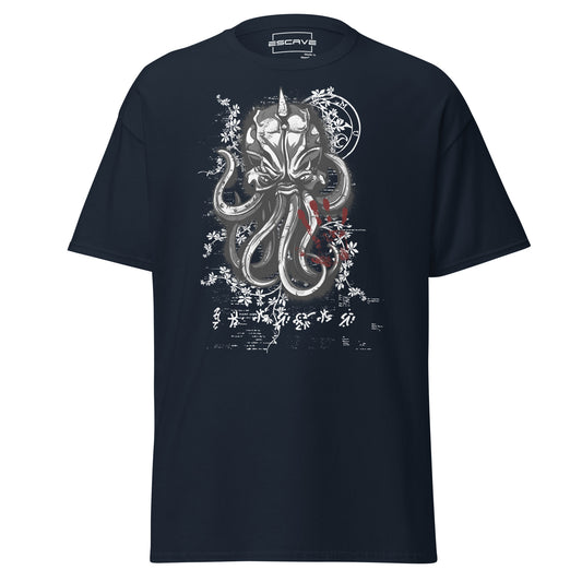 In the shadowy depths of the ocean, where myths are born and light is a distant memory, a creature reigns supreme. The Evil Octopus Mask Tentacle Terror T-Shirt vividly captures this haunting legend—a sinister octopus donning a mysterious mask, its tentacles coiled with an ominous energy that seems to reach out from the abyss.
