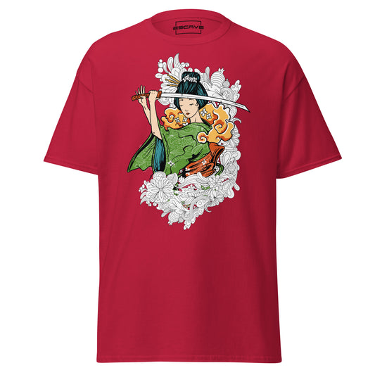 Step into the shadows of ancient Japan with our Kimono Samurai Illustration T-shirt. Featuring a strikingly detailed design of a fearsome samurai cloaked in a hauntingly beautiful kimono, this shirt captures the duality of elegance and menace. The intricate illustration brings the samurai's terrifying presence to life, making it a perfect choice for fans of Japanese culture, dark art, and bold fashion.