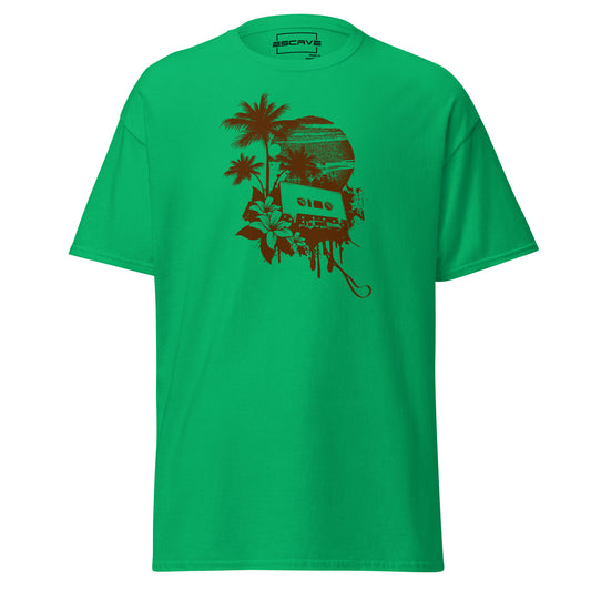 The Tropical Memories design is more than just a blast from the past—it’s a celebration of timeless moments, the magic of discovering new music, and the carefree joy of long summer days. Whether you grew up with a cassette player in hand or simply appreciate the retro charm of old-school music, this t-shirt captures the essence of an era that’s never quite left our hearts.