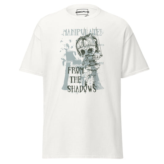Every thread weaves a story, and the Manipulated From the Shadows Black T-shirt tells one of intrigue and unseen influence. The hauntingly detailed design features shadowy hands manipulating invisible strings, a stark reminder of the forces working behind the scenes. This powerful, evocative imagery is for those who thrive on exploring hidden depths and embracing the unknown.